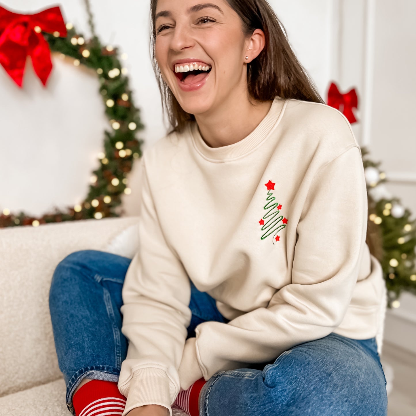 Džemperis turi išskirtinę detalę – subtiliai išsiuvinėtą eglutę, kuri puošia priekinę dalį. Tai simbolizuoja šventinę atmosferą ir suteikia džemperiui elegantiškumo. Šis megztukas yra puiki dovana, kadangi ne tik patiks tiek jauniems, tiek vyresniems, bet ir taps stilingu, šiltu drabužiu šaltą žiemos dieną. Idealus pasirinkimas, norint nustebinti artimuosius praktiška, tačiau labai miela dovana.