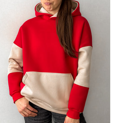 Oversize džemperis su pūkeliu, yra idealus pasirinkimas, derinantis komfortą, stilių ir ekologinę atsakomybę.